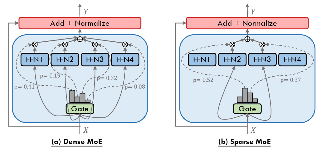 - 优点:极大减少计算量,这是目前主流模型(如 GShard、Switch Transformer、Mixtral、DeepSeek-MoE)的策略。